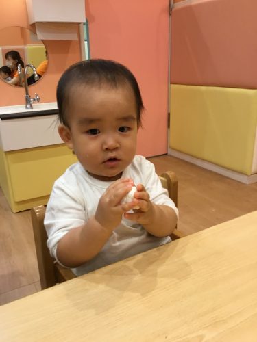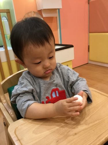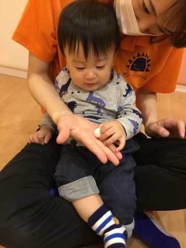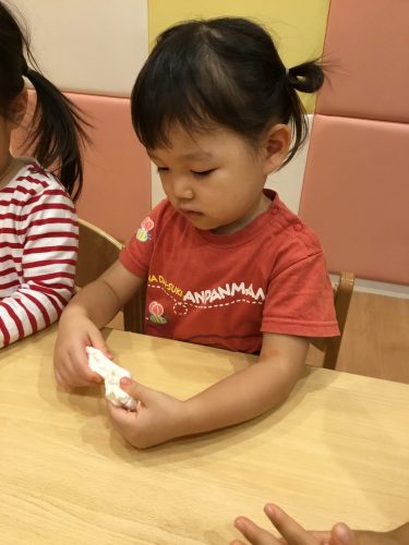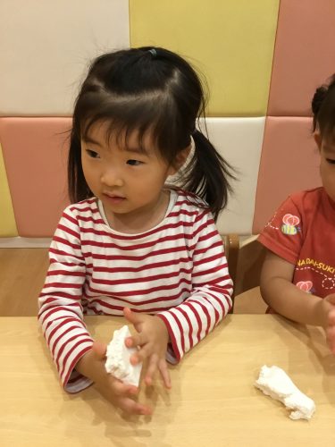 もも組さんは初めてみる粘土に不思議そうな表情を見せながらも