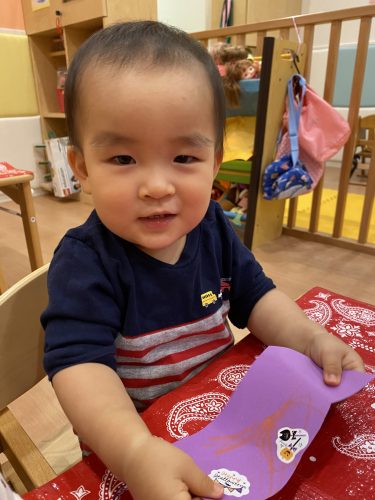小さなシールを小さな手で頑張って貼りました![]()