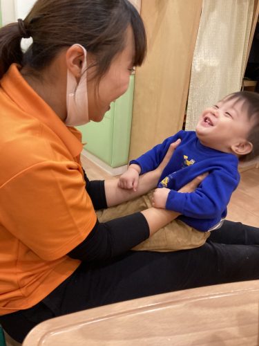 「おばけだよ~ひゅ~ひゅ~」などと声を掛けるとにっこり☻