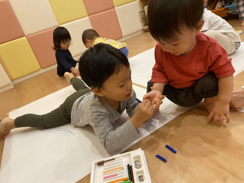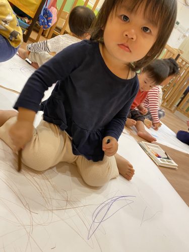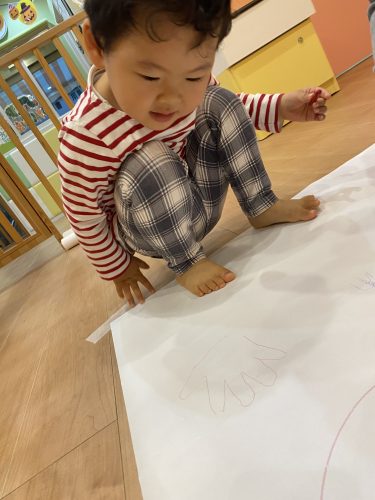 大きな紙に絵を描けることにとても喜んでくれました![]()