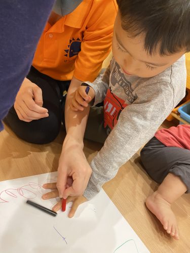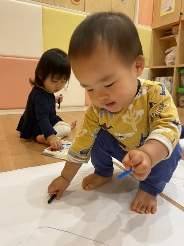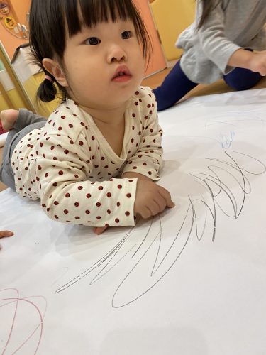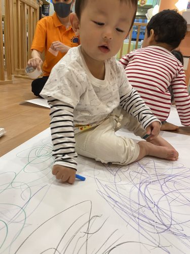 描いて良いのは紙の上だけというお約束もしっかりと守りもも組さんからりんご組さんまで全員で