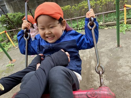 鬼ごっこをしたり鉄棒にぶら下がり「ゆーらゆーら」と揺れたりなど汗をかくほど沢山体を動かしました