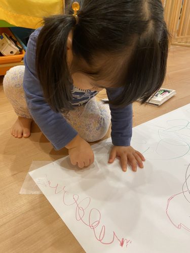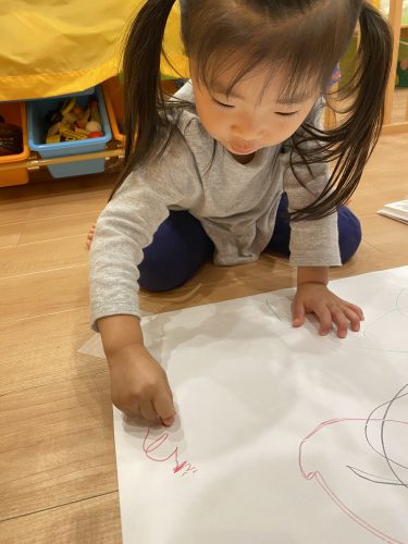 とっても大きな紙にお絵描きをしました✎普段は小さな紙に描くことが多いので
