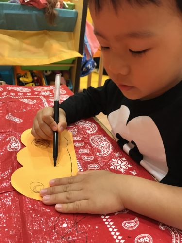 などとお話をし好きなパンプキンのお顔を書きました?