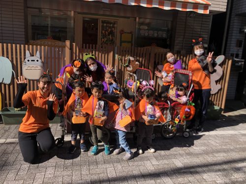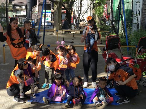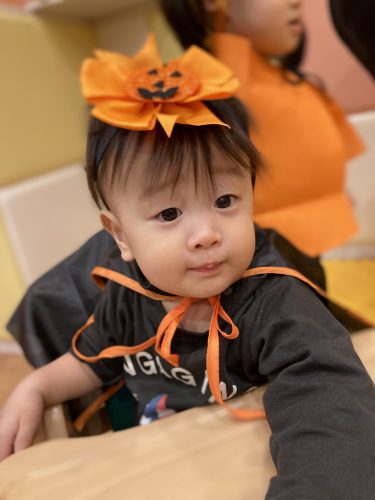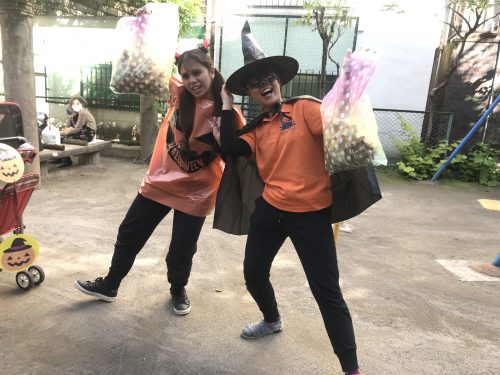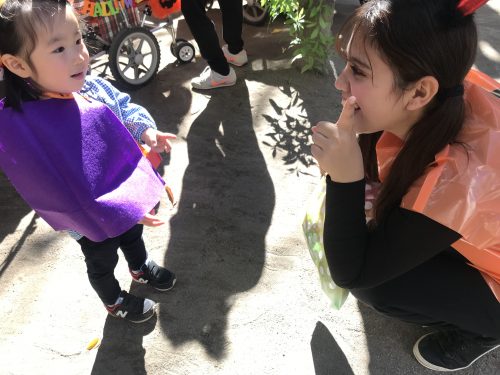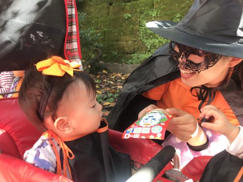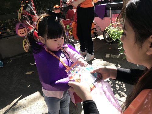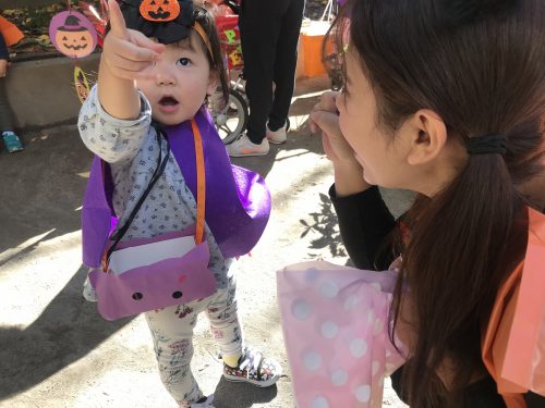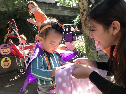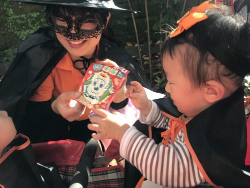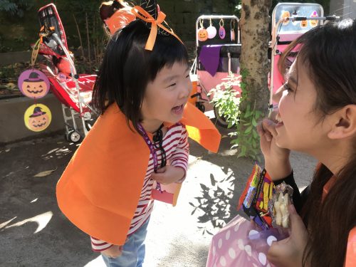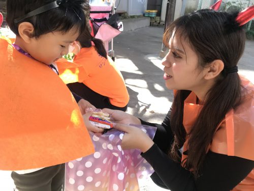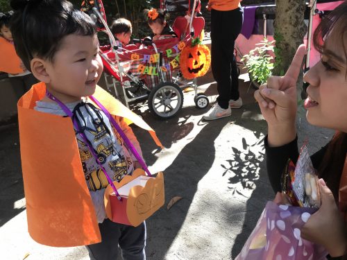 お子さま達は練習してきた「トリックオアトリート」を一人ひとり