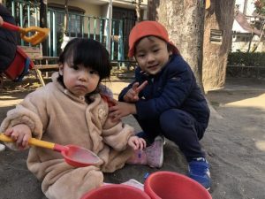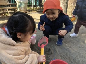 今週のキラキラショット!0歳児クラス?組さんを守ってくれる頼もしい2歳児クラスの
