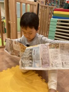 鬼をやっつけるよ!と丸める新聞に力が入ります![]()