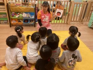 こんなに可愛いらしい1歳児さんお男の子も保育者の話をよく聞こう!と
