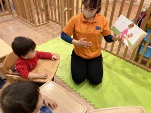 今週はもも組?さんの読み聞かせの様子をお伝えさせていただきます?