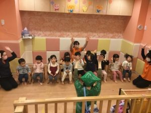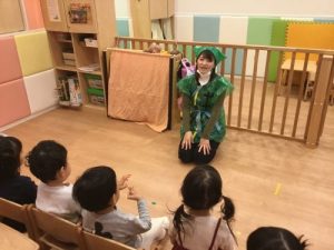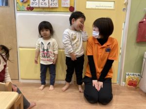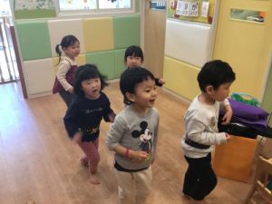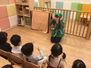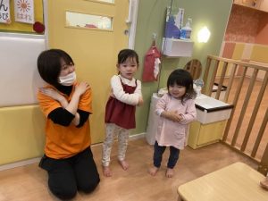 最近2歳児さんは表現遊びに興味を示し職員たちのする「劇」を楽しんでいます