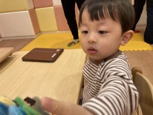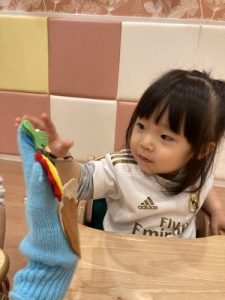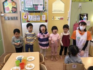 朝のおやつを食べる前には、「いただきますのお歌をうたいましょう♪」と元気よくお友だちに知らせてくれています^ ^