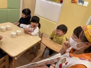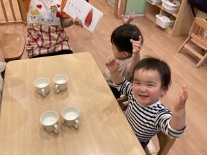 その音感の面白さから、「ふふふっ」と思わず笑みが溢れるお子さまたち?