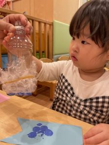 保育者はなんだか面白そうなスタンプ道具を用意![]()