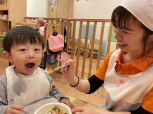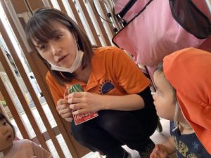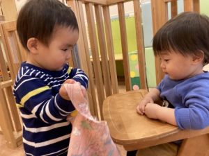」と確認するような姿も見られ、これぞ!小規模保育園ならではのゆったりとした中での縦割り保育・異年齢保育の良さを再度感じることのできる場面でした![]()