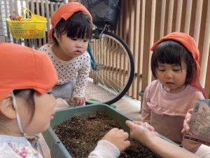 今週の?りんご組さんはキュウリの種まきに挑戦してみました![]()