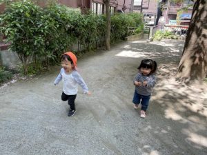 公園を走り出し、「○○ちゃん一緒に遊ぼう〜!」と