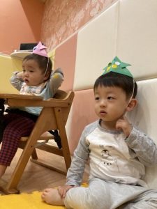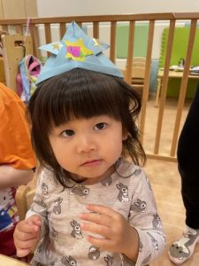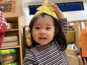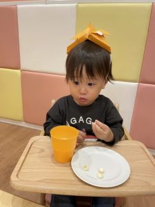 一人一人手作りの兜をお揃いで被ったら、おやつの歌を元気に歌って、、