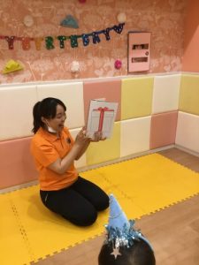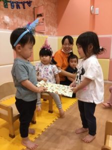 『おめでとう』や『どうぞ』と大好きなお友だちから手渡しでプレゼントされ、とっても嬉しそうでした。