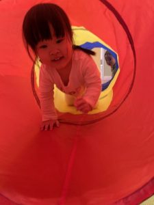 トンネル遊びを楽しみながらも、進行方向や順番など保育者のお話を聞いてお約束を守って、お友だちと仲良く楽しく遊びました☺️