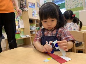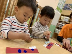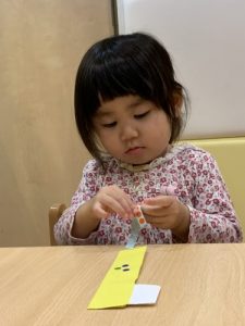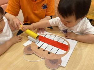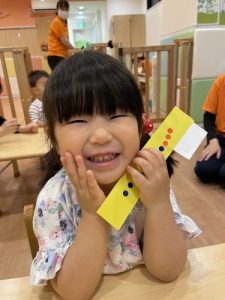 6月4日から一週間は「歯と口の健康週間」です。園では歯磨きに興味を持ってもらえるよう、一人一人オリジナルの歯磨きの製作をしました。みんな、一所懸命器用に手や指先をを使い、シールを貼ったり、お絵描きをして、長い時間集中して