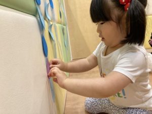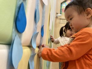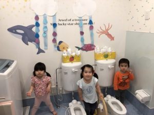 園のトイレが、梅雨時期ですが涼やかで楽しい空間に生まれ変わりました^ ^お子さま達は、しずくの向きなども考えながら、指先を器用に使いながら、製作してくれました。トイレが好きになり、オムツ卒業目指して、今月も楽しくトイレットトレーニングしていきたいと思います♪