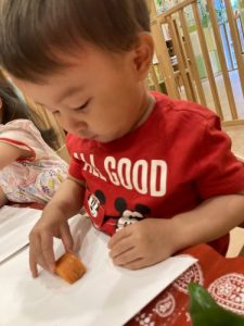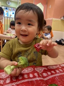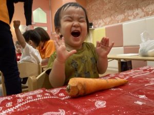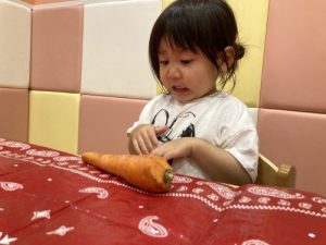 また今回の野菜スタンプ製作では、野菜が苦手なお子さまも実際に野菜に触れることで興味を持ち、苦手意識の克服に繋がると良いなというねらいをもって行いました☺️