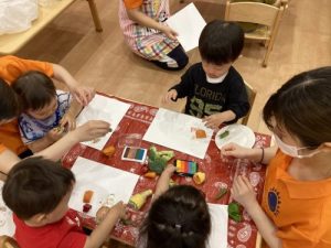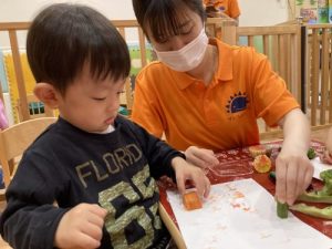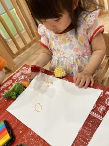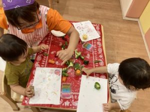 ご家庭でも、ご一緒に野菜スタンプで楽しく遊んでみてはいかがでしょうか?