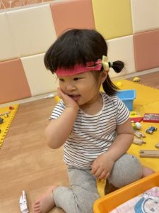 保育者と目が合うと、こんな可愛らしいポーズも見せてくれました?