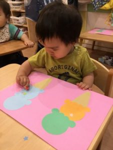 ??「シールペタペタするの楽しいな!」
