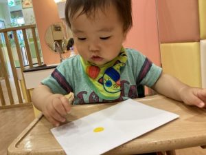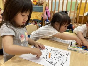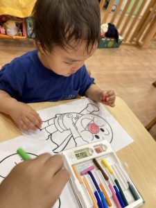 ??「アンパンマンのお鼻は赤色だったよ〜!次は何色にしようかな〜」