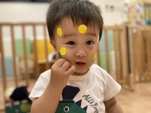 ??「見てみて〜!お顔にたくさん貼ったよ?」