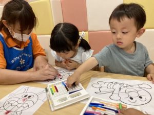 みんなでシール貼りと色塗りを行った様子をお届けします?
