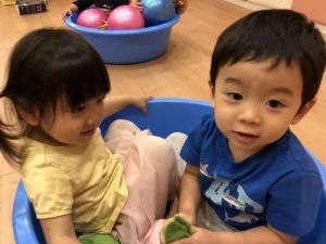 初めての環境に少しドキドキもしていたと思いますが周りのお友だちの笑顔とお声かけにすぐに仲良しさんです