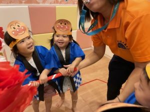 お神輿を担いだ後は、お子さまたちが大好きな「アンパンマン音頭」を踊りました☺️
