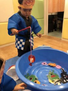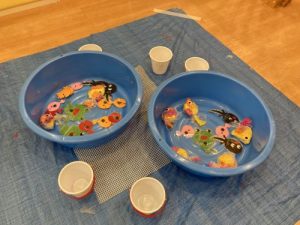 クラスごとに分かれて?魚釣り?、ボーリング?をして遊びました!