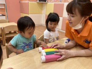 最初に保育者のお手本を見て興味津々のお子さま達?