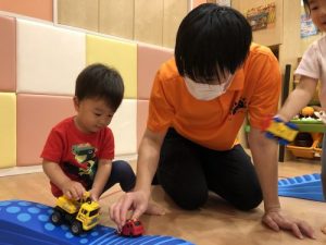 平均台で手を繋いでもらったり、平均台の上を一緒に車を走らせてもらったりと、みんな目をキラキラさせて楽しんでくれました。