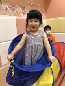 雨の日は、保育室内で、トンネルや滑り台、ダンスをして体を沢山動かして遊びます✨外に出られなくても、歓声をあげながら、楽しく過ごしています♪