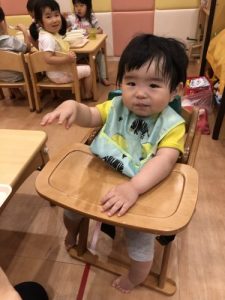 昼食時は、食卓椅子に上手に座ってピカピカに完食