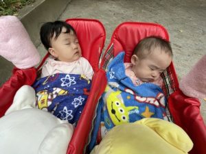 最後は公園に行くと心地良い風に吹かれて、ウトウトな可愛い0歳児のお子さまです。
