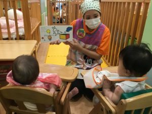 そんな時でも保育者が絵本を読むと、ピタリと涙を止めニコニコで見ることができる