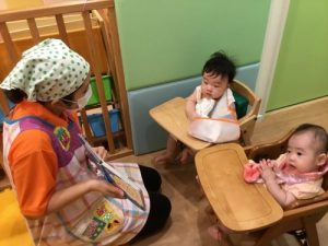 慣れない保育園で、時々涙も見られる白山園のお子様方ですが、
