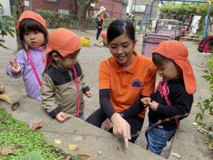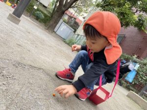 色とりどりの落ち葉や、木の実、探しに夢中なお子さま達の様子がこちらです?♀️