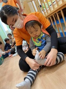 自分から靴下を取りに行き履こうとする姿が見られるようになってきました?