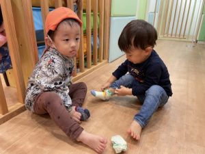 遊びの幅が広がってきた2歳児クラスの?りんご組さん。