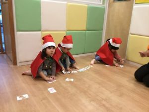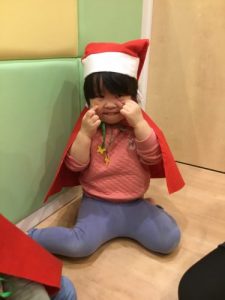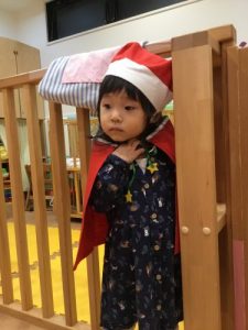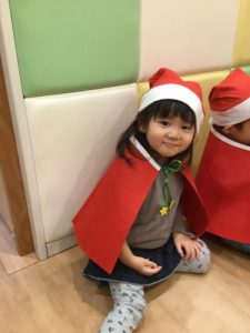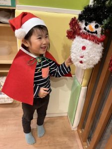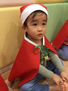 保育者にクリスマスの絵本を読んでもらい、クリスマスの日が楽しみなようです♪