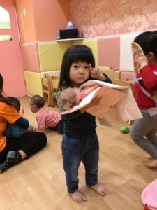 お兄さんお姉さんの優しく抱っこしている姿を見て真似っこ?