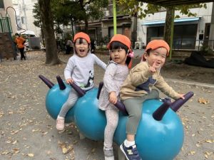 ?1歳児クラスのいちご組さんは新しくできた公園へ遊びにいきました。