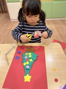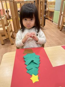 12月の2週目に行うクリスマス会の歌もしっかり覚えてきたようで毎日「あわてんぼうの〜♪」と口ずさむ可愛らしい声がいろいろな場所から聞こえてきます。