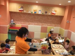 保育園では毎日10冊以上絵本の読み聞かせをしていますが今回は給食前の様子をお届けします。